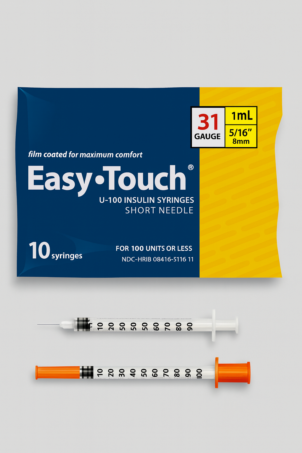 As seringas EasyTouch Insulin foram projetadas para oferecer o máximo conforto, com revestimento de filme para facilitar o uso e proporcionar maior precisão na dosagem. Elas não possuem “espaço morto”, garantindo uma dosagem precisa e menor desperdício. São 100% livres de látex. As seringas de insulina EasyTouch 30G combinam qualidade, conforto e custo-benefício.